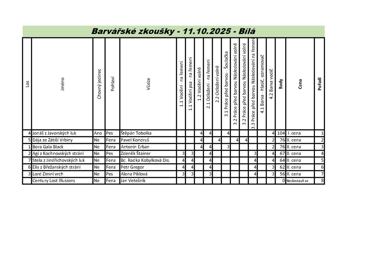 Výsledky a průběh zkoušek - Barvářské zkoušky - 11.10.2025 - Bílá