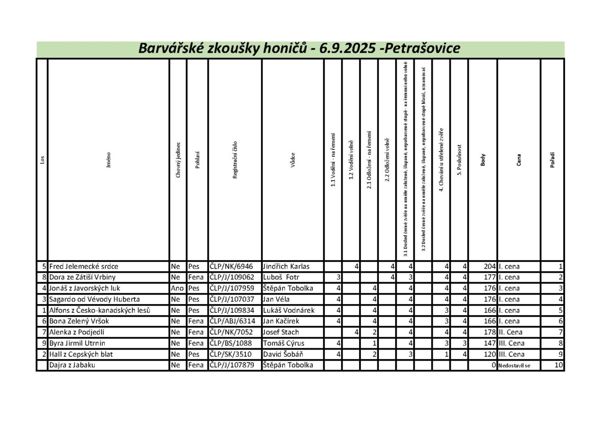 Barvářské zkoušky honičů 6.9.2025 - Petrašovice